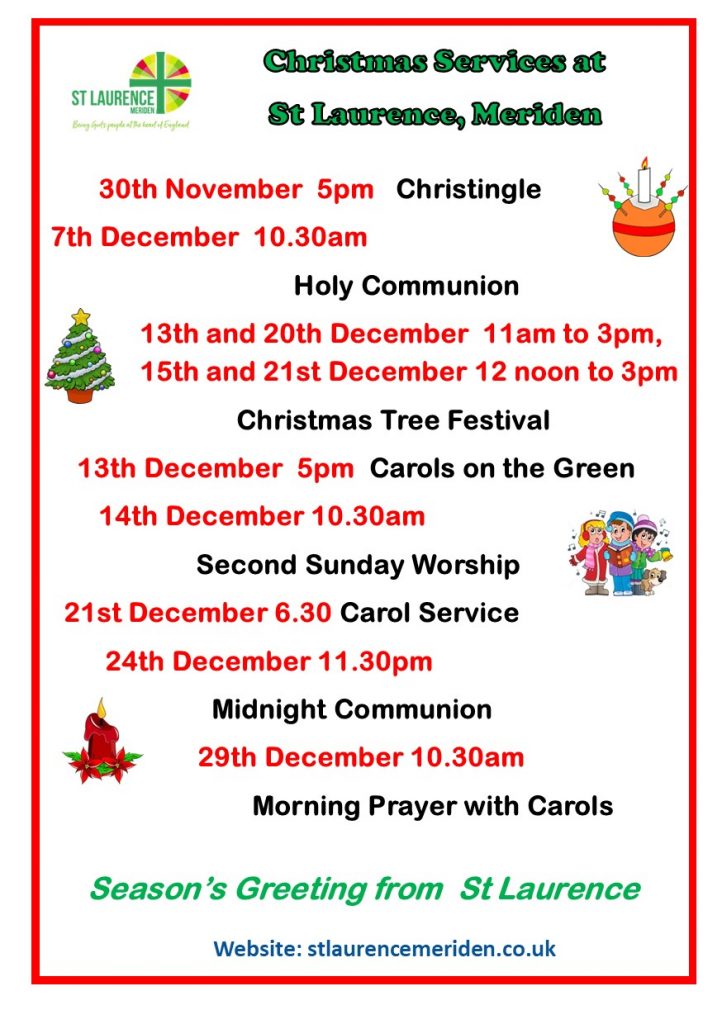 St Laurence is a local Church and as such has a duty to serve everyone within the Parish of Meriden and Millisons Wood. We attempt to make our different services both relevant and welcoming to everyone, regardless of age, gender and background.